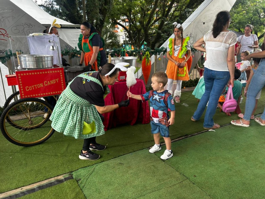 Segundo Érica Cristina Zanella, que levou a filha para a Praça Jayme Lago, a experiência foi muito positiva. “Achei tudo muito legal e interativo. Gostamos bastante das brincadeiras, da pintura de rosto, dos coelhos e da trupe. O algodão doce também fez sucesso, e a decoração estava linda, um cenário realmente encantador”, destacou.
